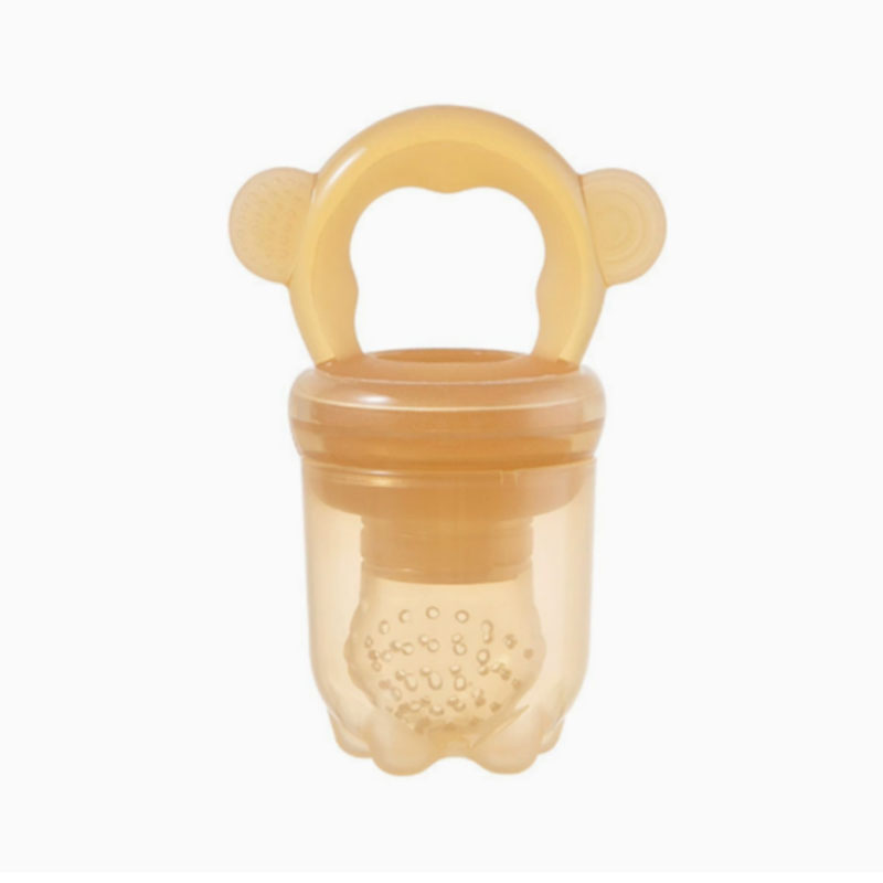 The Feeder Teether is made from food-grade silicone, suitable for babies aged 6 months and older. It aids in developing chewing and grasping skills.